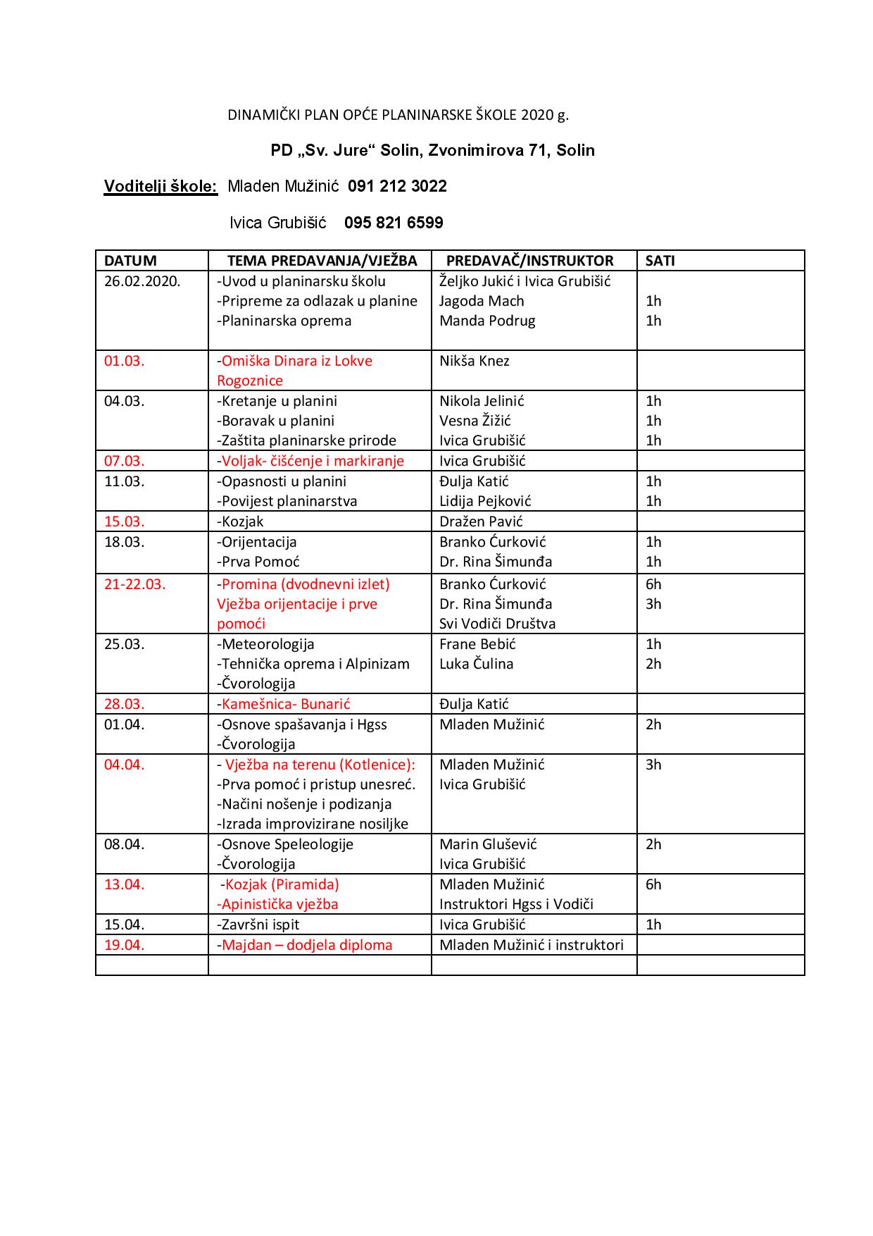 U prilogu je Plan Opće planinarske škole 2020.g. Svi zainteresirani mogu se javiti Ivici Grubišiću na broj 095 821 6599.